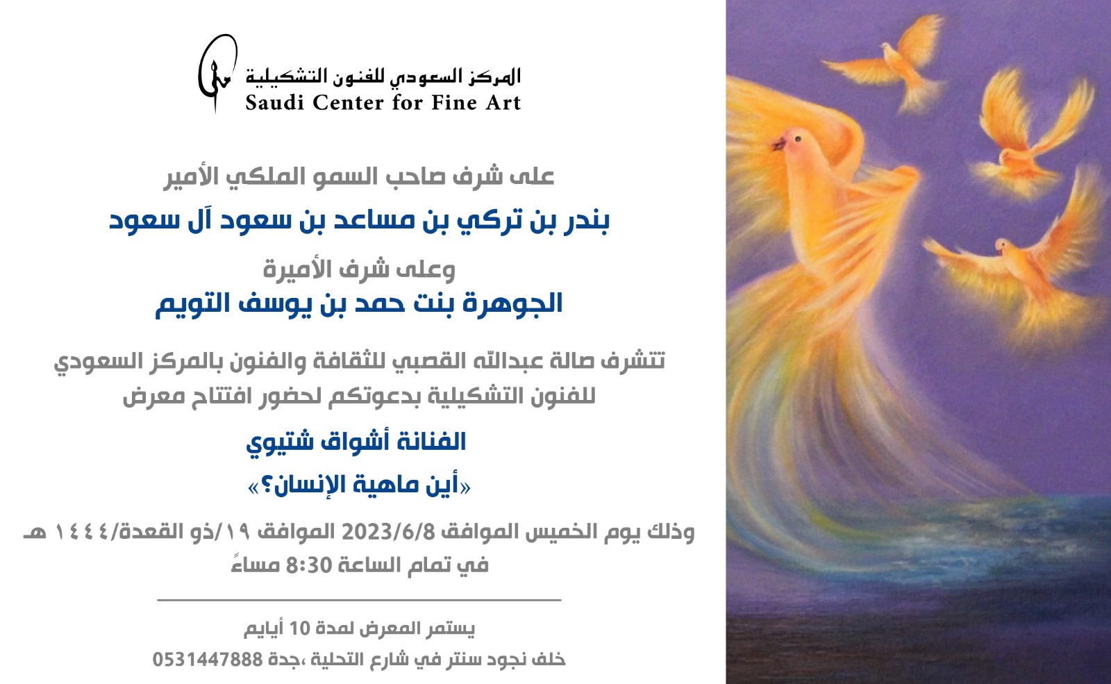 أخبار معرض أشواق الشتيوي أين ماهية الإنسان معرض الفنانة أشواق بصالة عبد الله القصبي للثقافة والفنون بالمركز السعودي للفنون التشكيلية 0531447888 يوليو 21, 2025