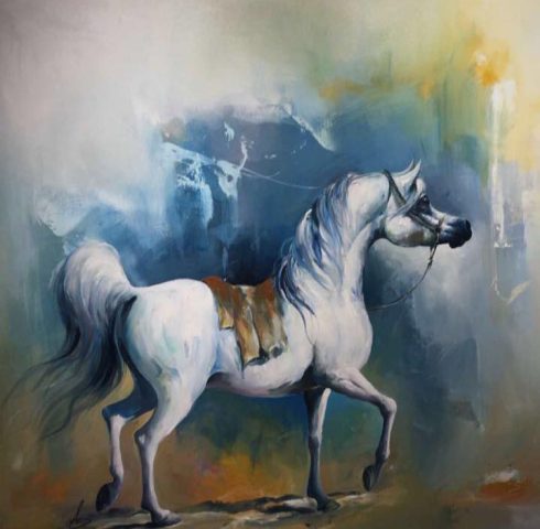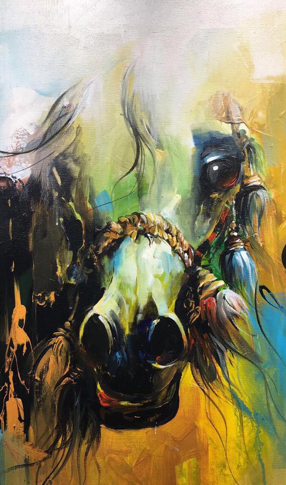 وتكتمل ( ملامح ) خيوله بالمهارة اللونية الممزوجة باستعارة ضوئية كبعد زمني ونوع من المتعة البصرية .
