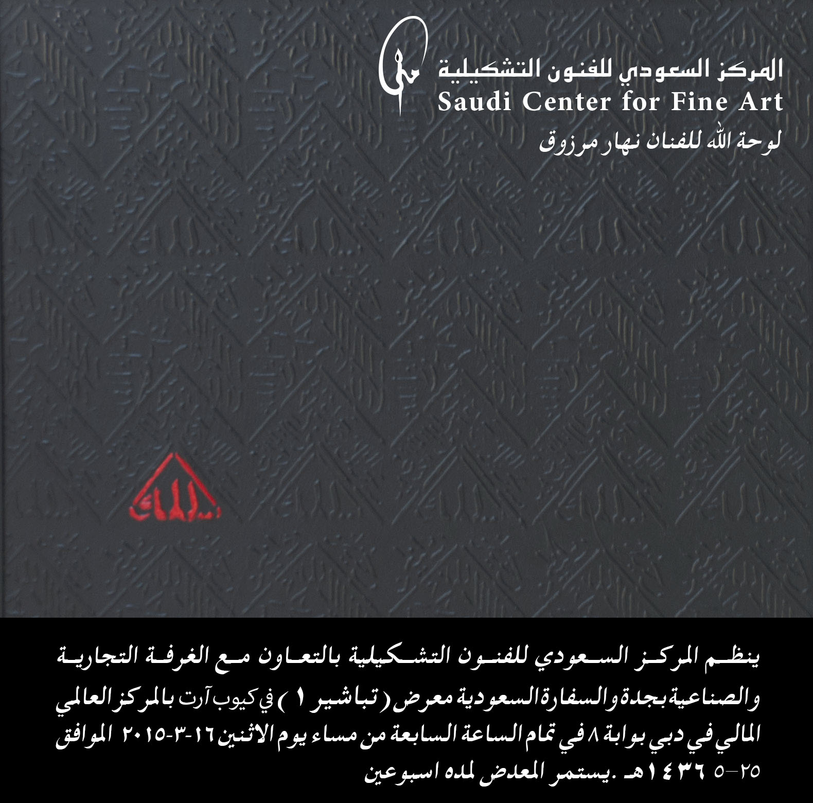 ينظم المركز السعودي للفنون التشكيلية بالتعاون مع الغرفة التجارية والصناعية بجدة والسفارة السعودية معرض (تباشير ١) في كيوب آرت بالمركز العالمي المالي في دبي بوابة 8 في تمام الساعة السابعة من مساء يوم الاثنين 16-3-2015 الموافق 25-5 ١٤٣٦هـ .يستمر المعدض لمده اسبوعين