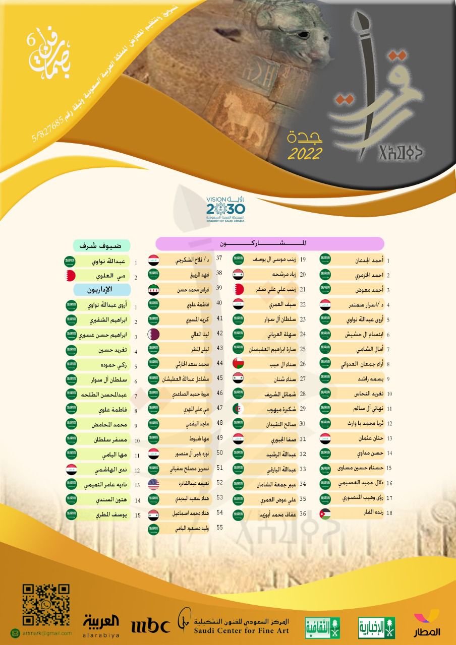 أقيم بالمركز السعودي للفنون التشكيلية في صالة عبد الله القصبي للثقافة والفنون معرض رقمات والذي يضم نخبة من الأسماء في عالم الفنون التشكيلية من مختلف البلاد العربية مثل الكويت والإمارات العراق ومصر والجزائرولبنان وسوريا وعمان  ويضم المعرض سبعون عملا فنيا متميزا يجمع ويصور بشكل جكيل حضارات عالمنا العربي وثقافاتنا المتعددة ويستمر المعرض لمدة عشر أيام