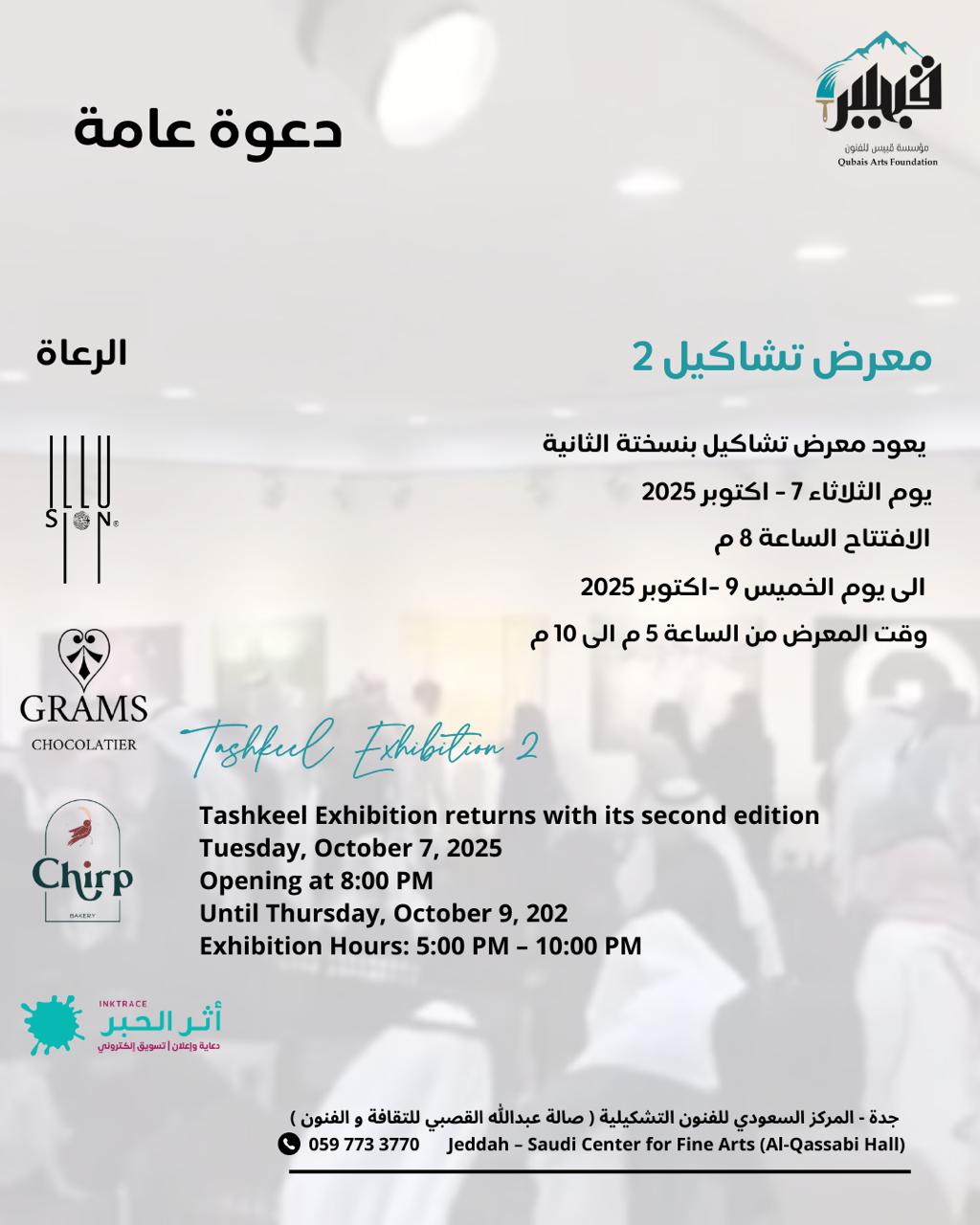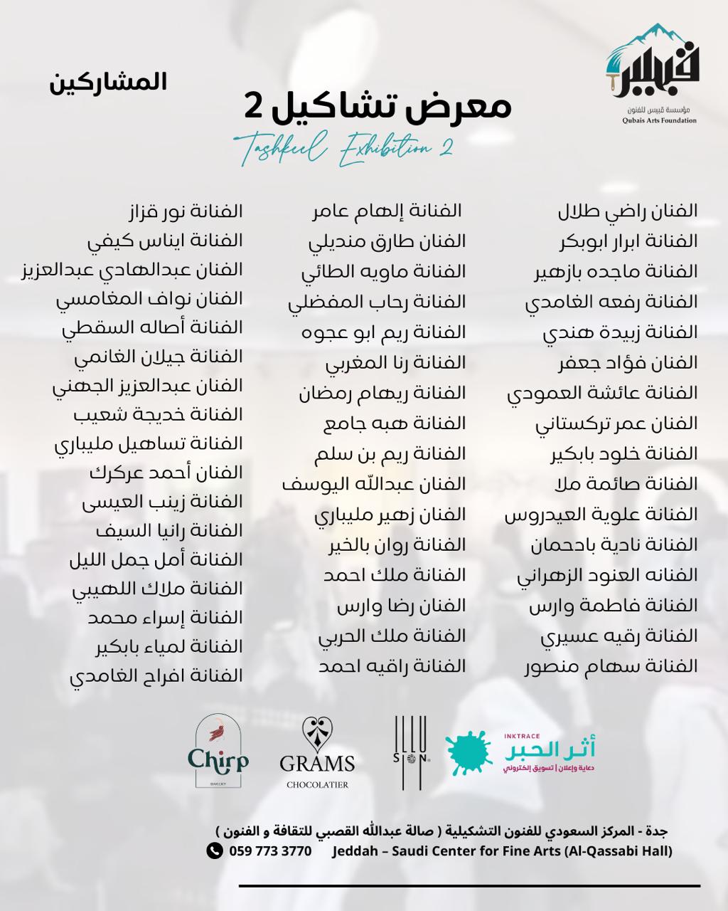 افتتح المركز السعودي للفنون التشكيلية بجدة بصالة عبدالله القصبي للثقافة والفنون، وبالتعاون مع مؤسسة قبيس للفنون، معرض “تشاكيل 2” الذي يضم 55 عملًا فنيًا ويشارك فيه 51 فنانًا وفنانة من أبرز المبدعين في المملكة.